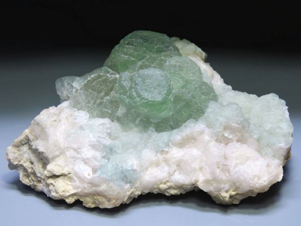 蛍光グリーンフローライト ロシア/プリモーリエ/ニコラエフスコエ産 804g (528) 寸法 約 W146x D116x H58(mm) 重量 約 804g 産地:極東ロシア、プリモーリエ(沿海地方)、ニコラエフスコエ ※寸法は 横幅Wx奥行Dx高さH で表示、画像は約90度回転させて撮ったものに表裏面、拡大画像などを加えています。 現品は、多面体のグリーンフローライトで、全体が丸みを帯びたような形になっております。 ブラックライトでピンク掛かった色のオレンジ色に蛍光するカルサイトが母岩の上を覆い、その上に青く蛍光するグリーンフローライトが付いています。 手持ちのブラックライトでは全体を照射できませんが、裏面も含めてかなりの広範囲が蛍光します。 産地メモを添付いたしますが、Nikolaevka Николаевкаは、ダリネゴルスクの西南西、ウラジオストクの近く北北東に位置します。 |