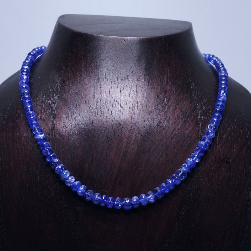 タンザナイトネックレス 宝石質 (品番068) 寸法 全長L 約 38(cm) 天然石 約 φ4.6~6.2(mm) 重量 約 21.9(g)(石のみ:104ct) 金具素材 K18 φは直径、W…幅、D…奥行(厚み)、LorH…長さ又は高さ を表示しています。 ジェイリーランクの丸ボタン・グラデーションのゴージャスなタンザナイトネックレスです。宝石質タンザナイト特有のピンク掛かった色合いの石が多く含まれております。 宝飾店扱いのクラスのもので、一般の天然石店で探し出すのは難しいと思います。宝飾店でも高級品を取扱いされているところに置いておられると思います。 K18金具はアジャスター付きで38pより約+5pまで長くして使用できます。 |