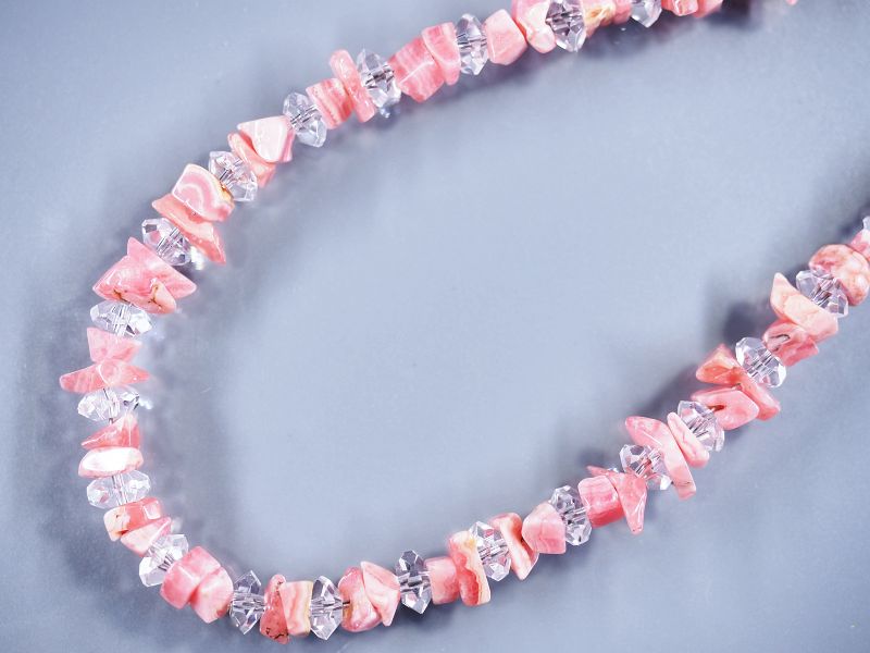 インカローズ・水晶ネックレス (品番320) 寸法 全長L 約 43(cm) 天然石 約 W4~10+φ6.5(mm) 玉数 86+44(個) 重量 約 26.1(g) 金具素材 真鍮・メッキ φは直径、W…幅、D…奥行(厚み)、LorH…長さ又は高さ を表示しています。 稀少となって来ているインカローズのさざれを水晶ボタンカットと組み合わせて安価なネックレスに仕上げました。端末仕上げに水晶丸玉を使用しています。 アジャスター付き留め金具ですので、+5センチ近く長くして使用できます。 |