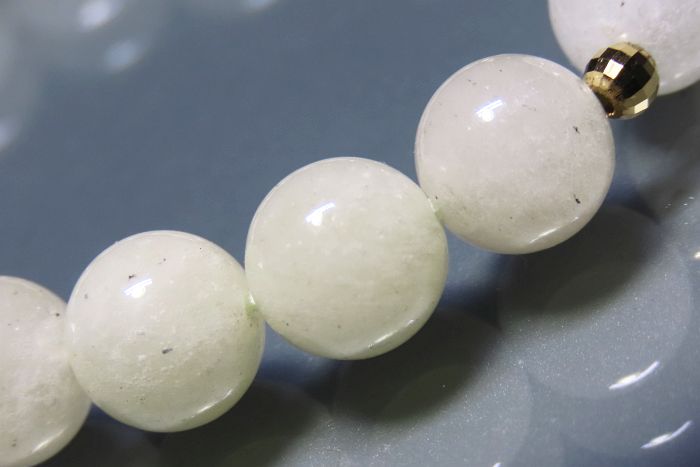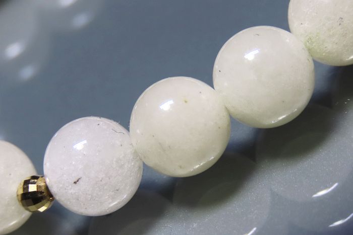 リビアングラスブレスレット 10mm 内寸17.1cm (3) 玉径 約 10+11+10.5+6+4(mm) 玉数 16+1+1+2+2個 重量 約 25.2g 画像は時計方向に回転して撮影したものです。 リビアングラス10o16個にモルダバイト11o1個、ギベオン隕石10.5o1個を加え、更に4mm K18ミラーボール(メッキ品ではありません)+6mm K18金ボール(メッキ品ではありません)で製作したブレスレットです。モルダバイトにはシリコンクッション、ギベオンの両端にはカット水晶をいれています。 モルダバイトは鑑別書番号NO.MM469→クリック【拡大1】のブレスレットをバラにした1粒を使用しております。 |